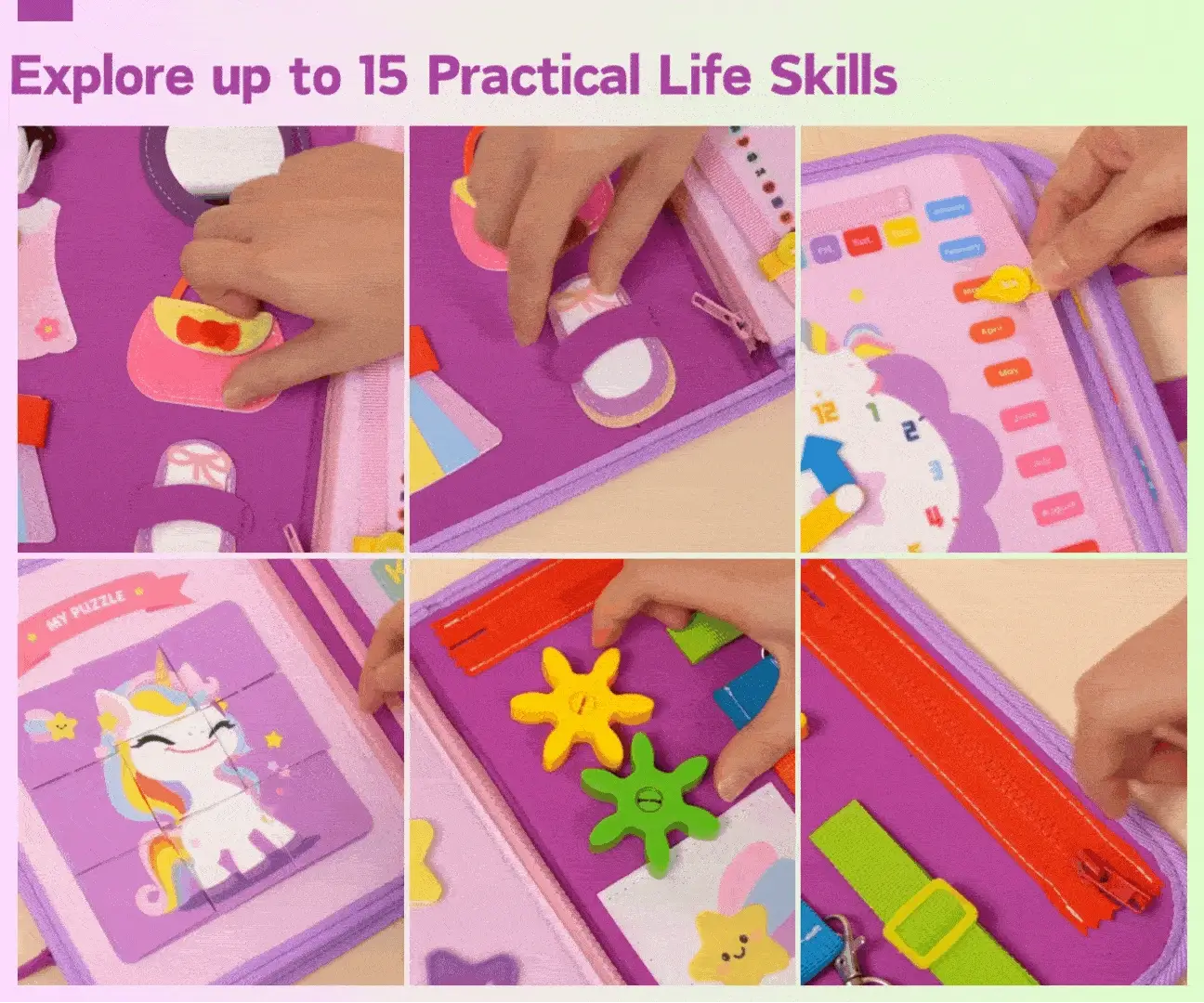Specially designed as a handbag, this toddler educational toy is an essential for toddler travel, you can easily put it in your backpack and take it anywhere you want.